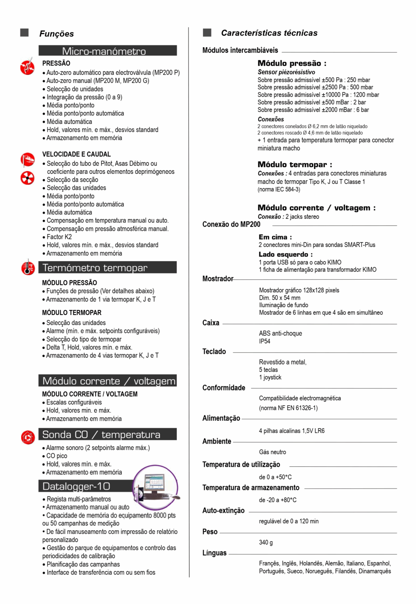 Manômetro Digital Portátil Modelo MP 200 Kimo